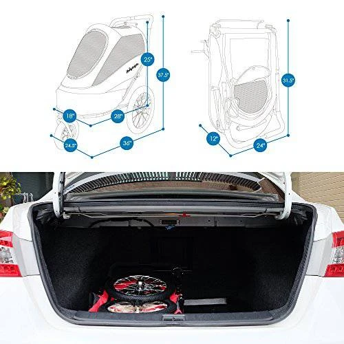 - ibiyaya Heavy Duty Dog Stroller/Pull Behind Bike Trailer Compact in size with a roomy interior of L28 W18 H25 (in), this heavy-duty bicycle pet trailer is lightweight and fits right through doorways yet also hold pets small, medium, or large in size up to 50 lbs.