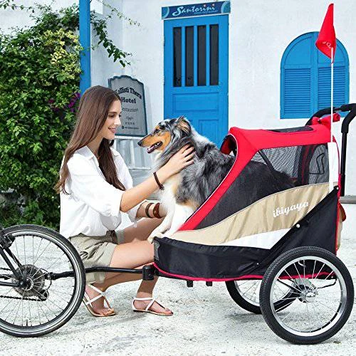 - ibiyaya Heavy Duty Dog Stroller/Pull Behind Bike Trailer Want to take a stroll through the neighborhood or go biking with your pet? You no longer have to choose with this 2-in-1 convertible pet stroller / jogger. Essential pet gear for sure!