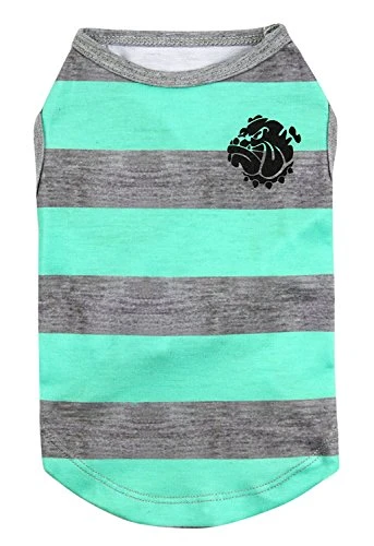 - Color brillante, rayas anchas gris y verde. Logotipo de Bulldog impreso en la parte posterior.