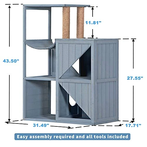 - Easy Assembly Required and All Tools Included: This Mcombo wooden cat house needs a easy installation, we are equipped with tools and instructions to help you complete it. (Overall Dimension: 31.5” x 17.7” x 43.5” )