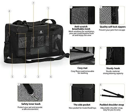 - Spacious & Ventilated: Features mesh panels for optimal airflow and a spacious interior to keep your pet comfortable and secure on the go.