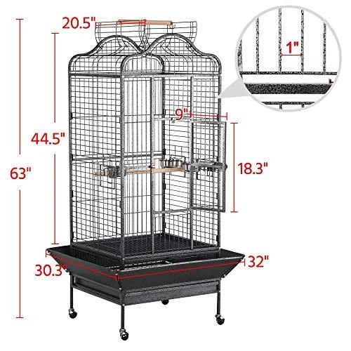 - Yaheetech Extra Large Open Playtop Bird Cage The Open Top Design: The open top design provides a more convenient way for better interaction between you and your birds. W 24 x D 22 x H 44.5 deluxe african grey bird cage with 1 bar spacing and thick wires.