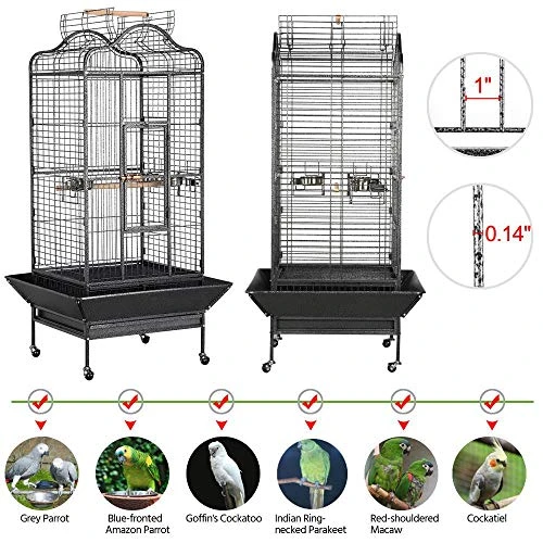 - Yaheetech Extra Large Open Playtop Bird Cage construction: Our extra large bird cage is crafted out of premium metal covered with non-toxic hammer tone paint. Welded frame and excellent rust and water resistance make this parrot cage a durable and safe pet cage with guaranteed quality.