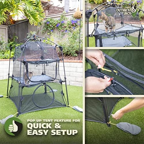 - PERFECT PLAY TENT FOR CATS AND SMALL ANIMALS – With over 30 square feet of activity space, this outdoor playhouse is designed to provide a safe play environment for cats, rabbits, guinea pigs, ferrets, and other small animals. To maximize playtime, there is plenty of extra space for toys, treats, and doing what they love – Run, chase, pounce, and tumble!