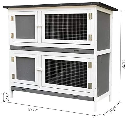 - 2-MAIN-ROOM HUTCH: This rabbit hutch features two main living rooms, offering room to keep more than one rabbit or similar animal.Overall Dimension: 39.25″ L x 18.5″ W x 35.75″ H