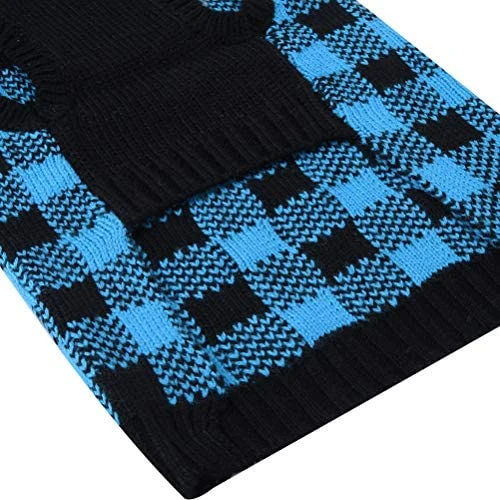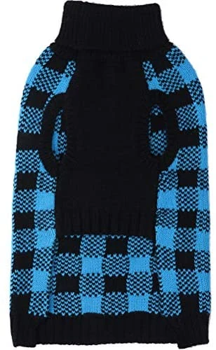 - Available in a classic Blue & Black plaid pattern, this sweater is perfect for adding a touch of style to your pet’s wardrobe. Suitable for small to medium-sized pets (Size S/M).