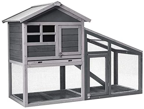 - Comfortable Habitat for Poultry: Raised and closed cage offers a warmer and safer for pets and poultries and prevents predators from reaching into the enclosure. The hutch with an pitch roof effectively protects them from irritating sunlight and rain to always keep a safe and comfortable shelter for pets.