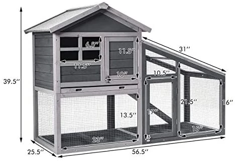 - Removable Tray & Ventilated Fence: Removable pull-out tray between two floors makes it easier to clean and maintain while also providing a neat and healthier environment for bunnies. Grid fences ensure the excellent ventilation which is essential to poultries living. Ground cloth is included for convenience.