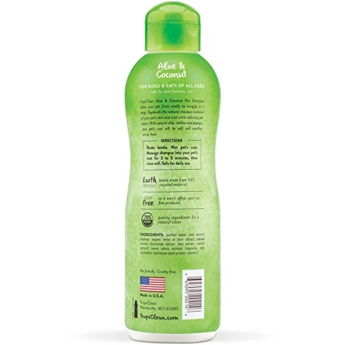 - Gentle & Effective Cleaning: TropiClean Aloe & Coconut Dog Shampoo is specially formulated to gently cleanse and moisturize your pet’s skin and coat, leaving them soft, shiny, and smelling fresh.
